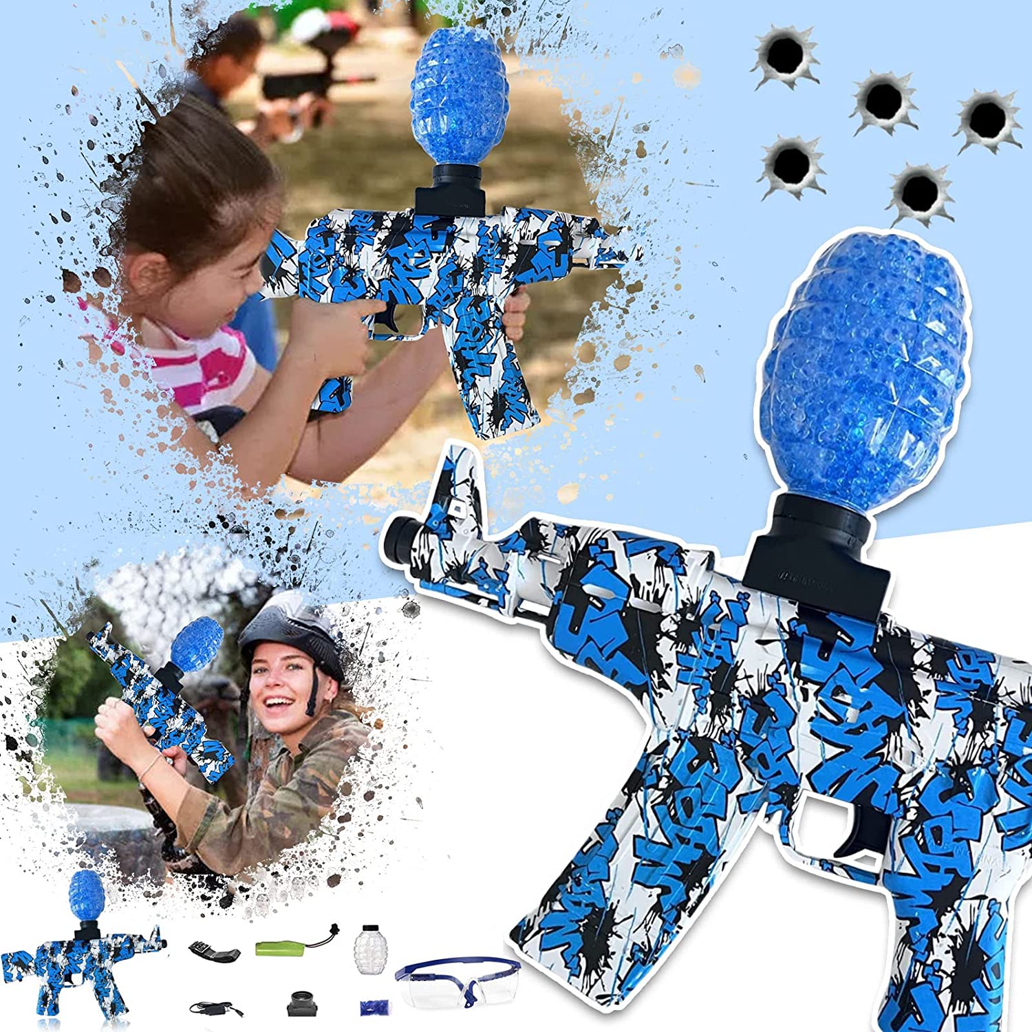 • Metralleta eléctrica de bolas de gel para diversión segura y dinámica.• Ideal tanto para niños como para adultos, fácil de usar y cómoda.• Disparo automático con bolas de gel suaves, pensadas para juego recreativo.• Diseño llamativo en color azul para una experiencia más atractiva.• Incluye todo lo necesario para empezar a jugar desde el primer momento.• Pack completo con gafas de seguridad, caja de carga y 10.000 bolas de gel.